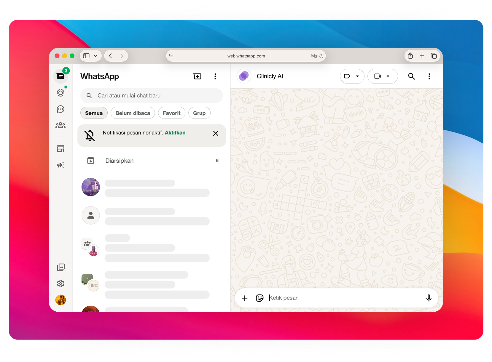Otomatisasi penuh di WhatsApp yang memastikan tidak ada satupun pasien yang lepas. Biarkan AI menangkap booking dan follow-up, sementara admin fokus pada hal yang lebih penting.