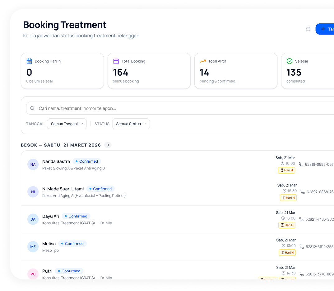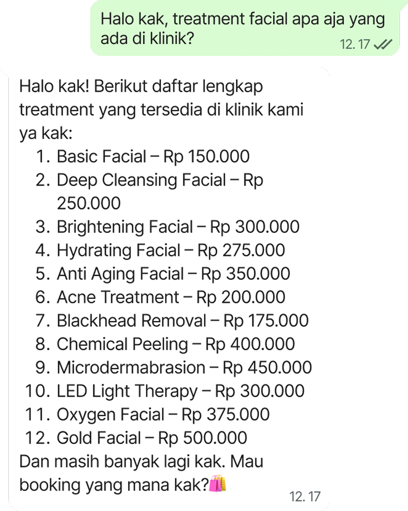"AI-nya paham treatment kami sampai detail. Pelanggan baru langsung dapat penjelasan lengkap tanpa disuruh nunggu admin."
